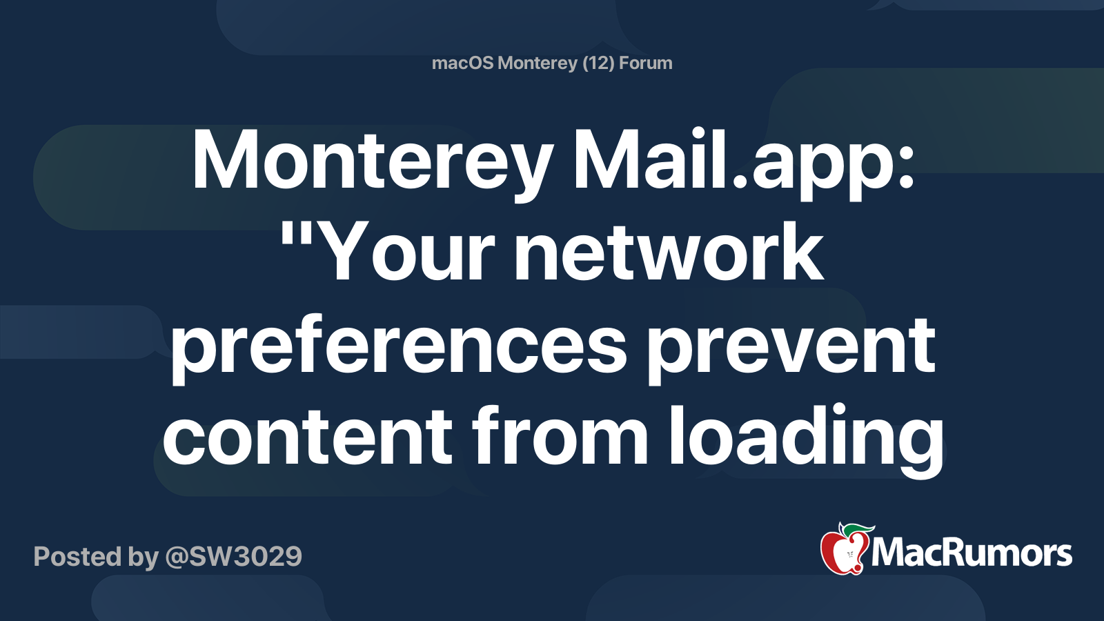 Monterey Mail App Your Network Preferences Prevent Content From Loading Privately Macrumors Forums